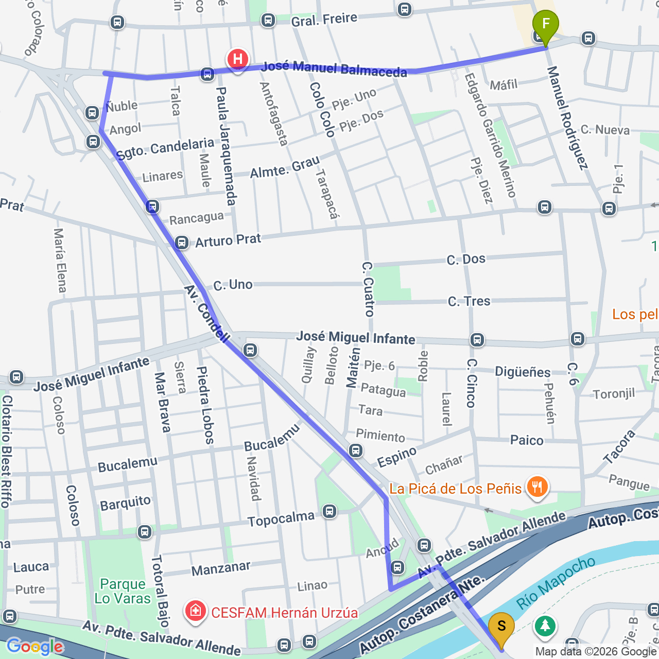 De Parque Mapocho Río Tramo 2 a Parque Metropolitano Cerros de Renca