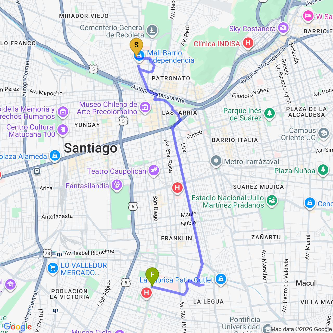 De Plaza Blest Gana a Parque Intercomunal Victor Jara